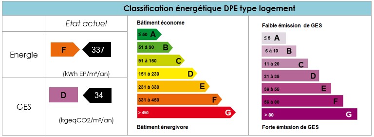 Étiquette énergétique actuelle : F (337 kWhEP/m²/an)