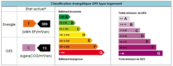 • Étiquette énergétique actuelle : F (389 kWhEP/m²/an)